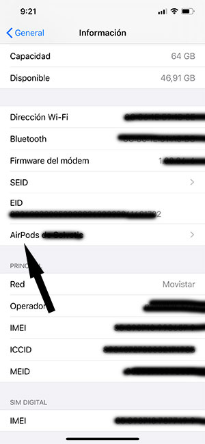 Ajustes-General-Información- AirPods