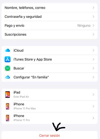 3- Ahora ya te aparecerán los datos relacionados con iCloud. Abajo a la derecha verás la opción de Cerrar sesión. Pulsa ahí.