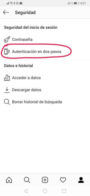 Por si te quieres asegurar de esto, le mejor es que actives la verificación en dos pasos para que cada vez que inicies sesión entres en la cuenta o alguien lo haga, recibas una notificación sobre esto. Para ello Ves: