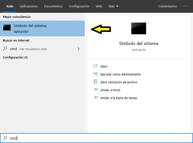 Paso 1: Escribe en la barra de búsqueda de Windows 10 “CMD”