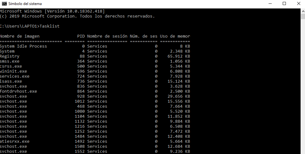 2. Escribe tasklist para ver los procesos activos y quédate con el tuyo:
