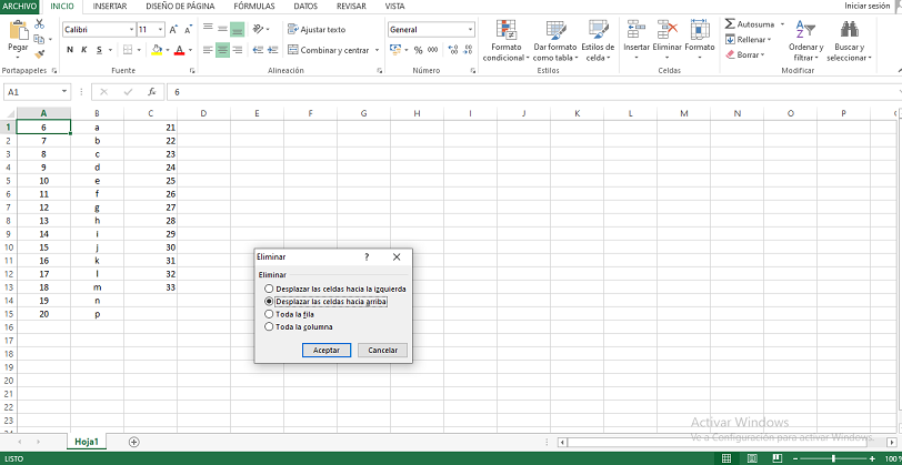 Vale resaltar que si deseas eliminar toda una columna y toda una fila de manera simultánea solo deberás guiarte por el siguiente ejemplo: