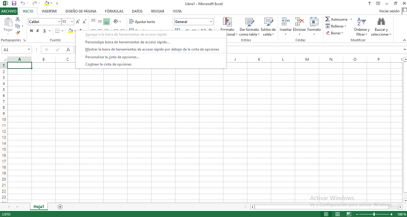 Lo único que necesitas es asignar al menú de color un letra o número para poder acceder rápidamente. ¿Cómo? Si te fijas en las opciones que te da el Excel debajo de las opciones principales ( “Archivo”, “inicio”, “Insertar” puedes pulsa en el botón derecho de los iconos y se abre un menú con 3 opciones.