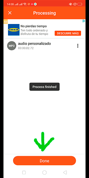 6- Dale un nombre a tu audio y guárdalo. Verás que el proceso acabó. Pulsa en Done”.