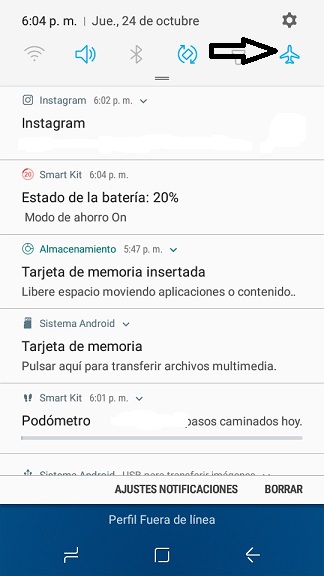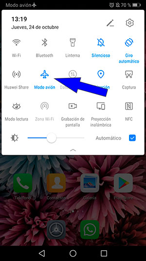 Cuando activamos el modo avión en el terminal, ocurre lo siguiente: