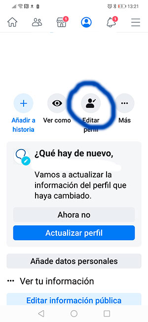 En tu perfil, pulsa en “Editar perfil” ya que es aquí donde se puede configurar la información personal de los usuarios.
