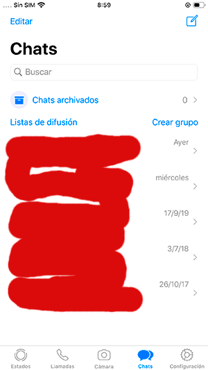 - Ingresa a la sección de “Chats” en whatsapp