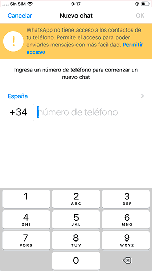 No puedo agregar un contacto de otro país en WhatsApp iPhone