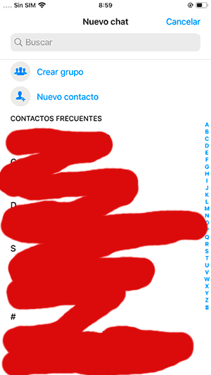 Me estoy volviendo loco intentado agregar un contacto para que aparezca en WhatsApp dentro del iPhone. Yo creo que lo he agregado bien pero después no consigo que me aparezca en los contactos de WhatsApp. Ya no sé qué hacer, ayuda por favooor