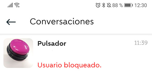 - Igualmente la aplicación te mostrara un mensaje informativo en el momento que intentes mantener cualquier tipo de comunicación con la persona que te bloqueo, este dirá “El usuario te ha bloqueado”