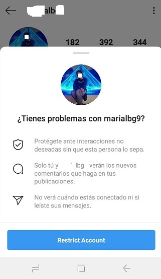 Buenas Virginia, es una utilidad que ha lanzado nueva Instagram para que puedas restringir determinadas cuentas sin tener que bloquearlas. Si no te aparece esto puede ser normal ya que acaba de lanzarse.