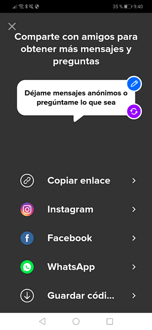 - Se te dará la opción de enviarlo a otras redes sociales, pero en este caso solo debes hacer click sobre la alternativa “Copiar enlace” para poder continuar.