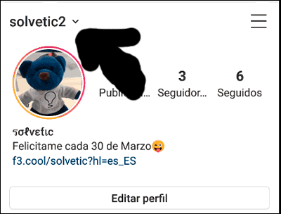 - Irte a tu perfil de Instagram