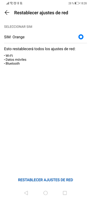 Retablecer los ajustes de red