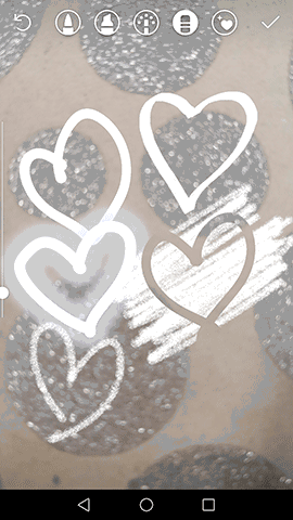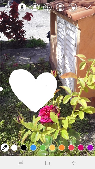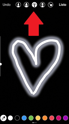 Después, para dibujar, selecciona el color blanco en la barra de la parte inferior y ve probando los diferentes efectos de dibujo en la parte superior. Esta es una de las formas de poner un corazón blanco en Instagram.