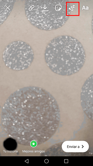 Una de las opciones para poner un corazón blanco es dibujarlo en las historias de Instagram. Para ello tienes que entrar en las historias de Instagram, subir una foto o vídeo o hacerlo desde la cámara de Instagram y después pulsar en el icono de la línea curva que vas a ver en la parte superior.