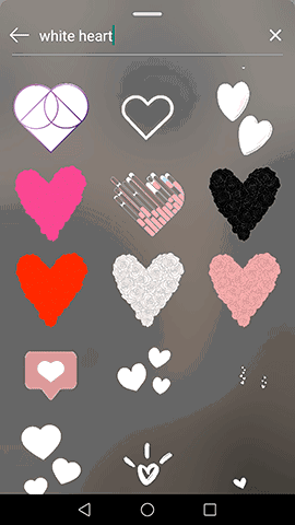 Vas a ver un montón de GIFs de corazones blancos que puedes poner y añadir en tus historias en Instagram.