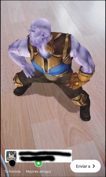 - Voilá! Tu Thanos aparece en pantalla. Eso sí solo funciona con la cámara trasera. Coloca a Thanos donde quieras y con el tamaño que prefieras.