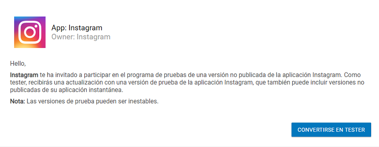 Si después de esto todavía sigue sin funcionarte esta opción, te recomiendo que pruebes a hacerte beta tester de la app. Esto significa que entrarías a formar parte del programa de pruebas de Instagram, y podrías actualizar cuanto antes, ya que las actualizaciones llegan antes que los usuarios normales.