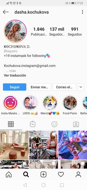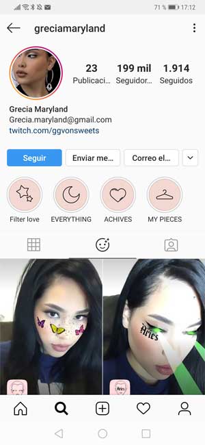 Cuando hayas entrado en su perfil, vas a poder ver este filtro.
