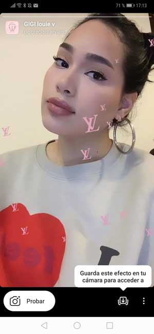 Cuando entres en los perfiles de estas dos personas, selecciona la opción de filtros y pulsa sobre el de Louis Vuitton. Cuando hayas pulsado verás que en la parte inferior aparece una opción para que puedas guardar este efecto en tu cámara.