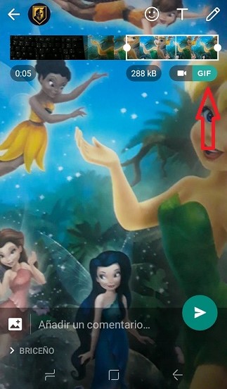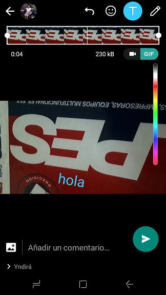 Paso 5: Pulsa sobre “Gif” y si quieres agregar algún emoji podrás hacerlo presionando en el icono de la carita, o si prefieres escribir algo pulsa sobre la “T”