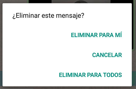 Normalmente cuando quieres eliminar un mensaje en WhatsApp te sale la opción "Eliminar para todos" y "Eliminar para mi".