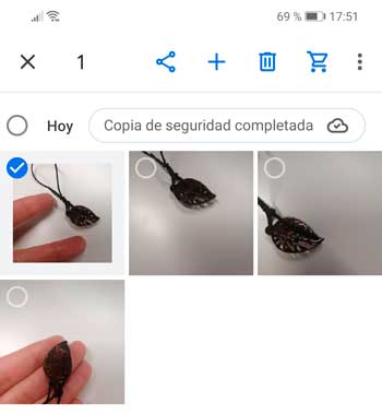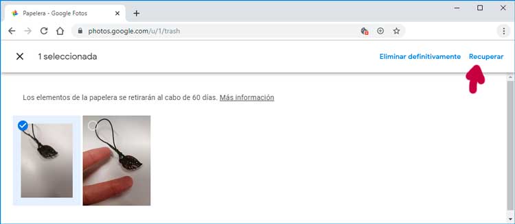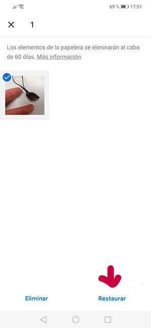 - Para restaurar una imagen mantén pulsada sobre ella, en PC te sale como un check y debes marcarlo.