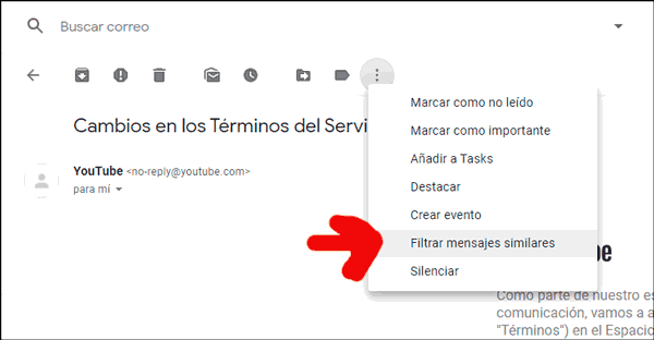 - Se abrirá una ventana emergente donde podrás observar varias alternativas, solo debes presionar en “Filtrar mensajes similares”