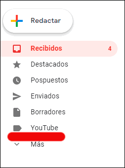 Un ejemplo sería crear una etiqueta con correos del trabajo, de la universidad, de promociones… si hay una dirección o direcciones que nos escribe mucho pues este filtrado puede ser interesante. Yo voy a crear una categoría de YouTube por ejemplo.