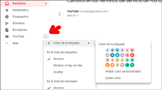 - Por último, puedes saber que si vas a la etiqueta y pulsas en los 3 puntos podrás realizar ajustes como cambiarle el color.