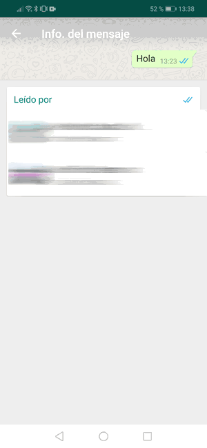 En el caso de los grupos esto es distinto, ya que la confirmación de lectura siempre aparece esté o no desactivado el check azul. De hecho puedes pulsar sobre el mensaje para entrar dentro de la información y ver las personas que lo han visto. En el caso de que aparezca azul, significa que todos los contactos del grupo han visto el mensaje.