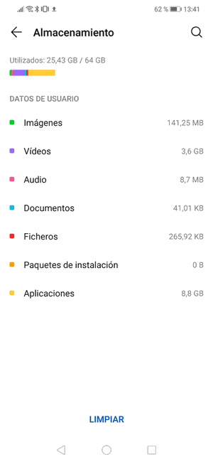 Otro de los motivos por los que es posible que no te funcionen bien los GIF de WhatsApp, es porque no tienes suficiente memoria en el teléfono. Esto se comprueba de diferente manera en cada uno de los terminales, pero los pasos serán similares a estos.