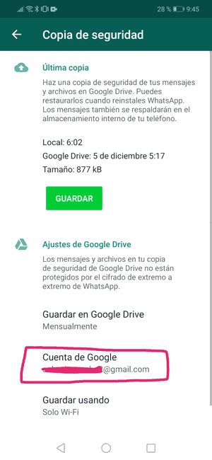 Copia de seguridad de WhatsApp no carga Android