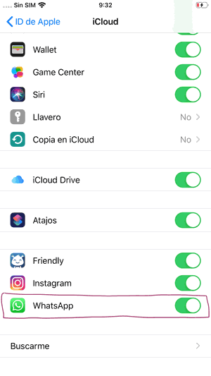 Una de las primeras configuraciones que debes hacer es asegurarte de que iCloud se encuentra activo para WhatsApp. Para ello: