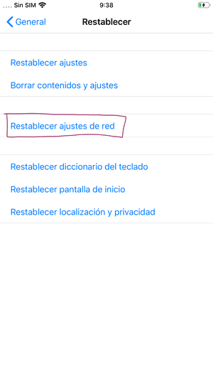 4. Restablecer ajustes de red