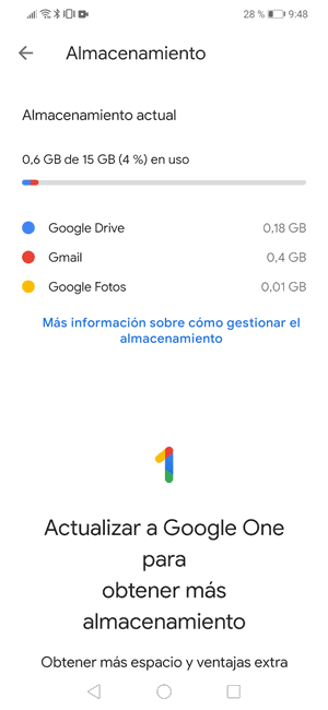 Otro de los motivos por los que se puede dar dando este fallo, es porque no hay suficiente memoria en el teléfono. Para comprobar esto puede variar según el modelo de Android, pero los pasos suelen ser muy similares en la mayoría de los casos.