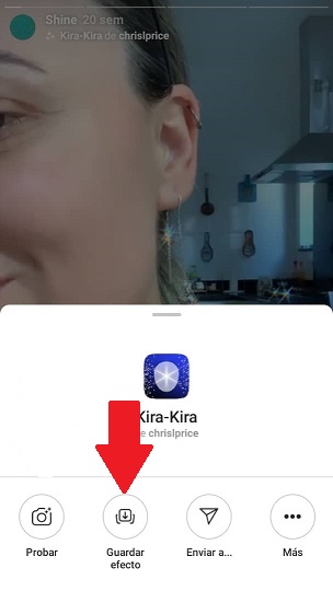 Una vez hayas pulsado, se va a desplegar una ventanita en la parte de abajo. Pues bien aquí tienes que pulsar en “Guardar efecto” y el filtro se guardará en tu cámara de Instagram. Así de simple!