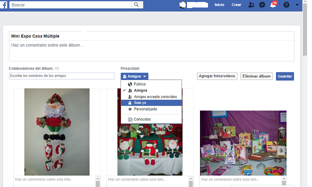 - Ahora se muestran varias alternativas de configuración y en tu caso debes pulsar sobre “Solo yo†para que de esta manera nadie pueda ver esas fotos.