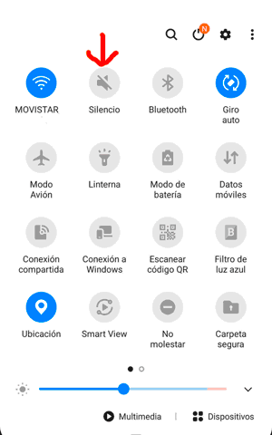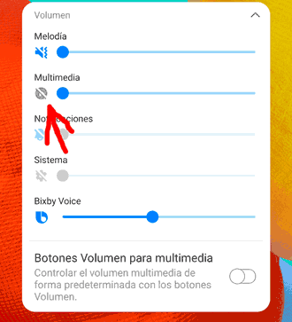 En la parte derecha de tus Galaxy verás que tienes el volumen. Tienes que mantener presionado la tecla de bajarlo hasta que veas en el monitor de tu Samsung la configuración de sonido. Aquí tienes que acabar de deslizar el volumen Multimedia hasta que tu teléfono esté totalmente en silencio. Dejando en sonido el volumen multimedia debería dejarse de oír el sonido de obturador de cámara.