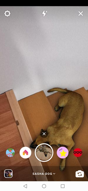 Cuando quiero usar un filtro de Instagram como por ejemplo el de Sasha Dog, o algún personaje que baile, me salen en cualquier lado, o me salen como se ve en la foto. Si me pudieran ayudar se los agradecería mucho