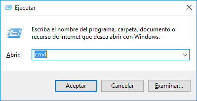 - Aparecerá en la parte inferior izquierda de la pantalla un recuadro identificado como Ejecutable, allí vas a escribir CMD y presionas “Enter o Aceptar” automáticamente se presentara la pantalla para utilizar comandos.