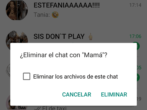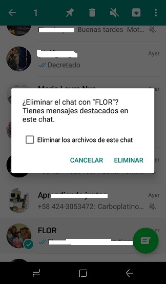 En el caso de que quieras borrar el chat por completo, no tendr谩s que entrar dentro del chat ya que la manera de borrarlo es la siguiente.