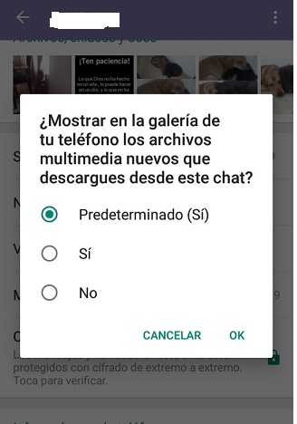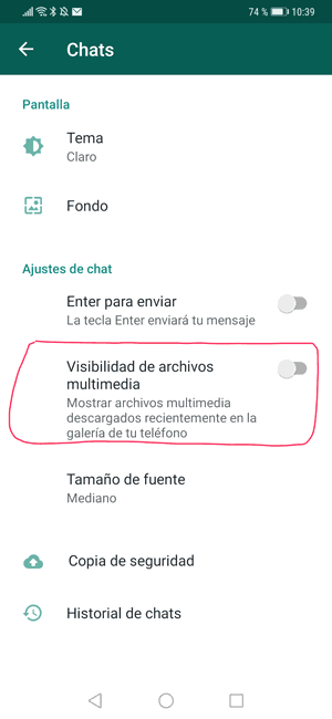 De esta manera los archivos multimedia que recibas no serán almacenados en la galería, esto te mantendrá la memoria de tu equipo con más capacidad que puedes utilizar en otras cosas.