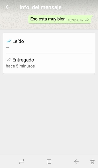 Pero debes tomar en cuenta que aunque hayas quitado la confirmación de lectura en tu cuenta de WhatsApp, todavía queda presente la herramienta Info del mensaje, esta establece que por cada mensaje que envíes tendrás la alternativa de observar en la pantalla de info la hora en la que tu mensaje fue entregado, así como si este fue leído o no, incluso si un mensaje fue escuchado.