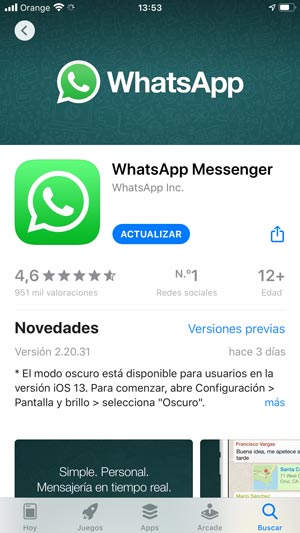 Vete al App Store y comprueba si hay alguna actualización de WhatsApp para que la puedas hacer y ver si así puedes solucionar el problema.