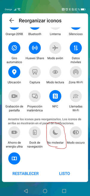 Nose donde he debido tocar, pero en la barra superior de mi huawei aparece una luna. La quiero quitar pero nose cómo hacerlo porque no se lo que es.