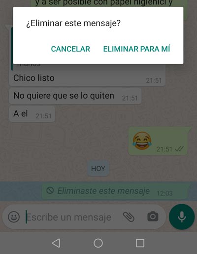 EL problema que ese mensaje también han podido eliminarlo en el caso de que como dices hayan tenido acceso a tu whatsapp sin tu consentimiento...