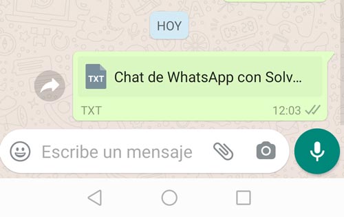 Por último lo que puedes hacer es descargarte un archivo de WhatsApp en el que puedes hacer es exportar tu el chat desde el que crees que ha podido pasar esto y comprobar si se en ese chat se ha enviado algún archivo de exportación de chats de WhatsApp.