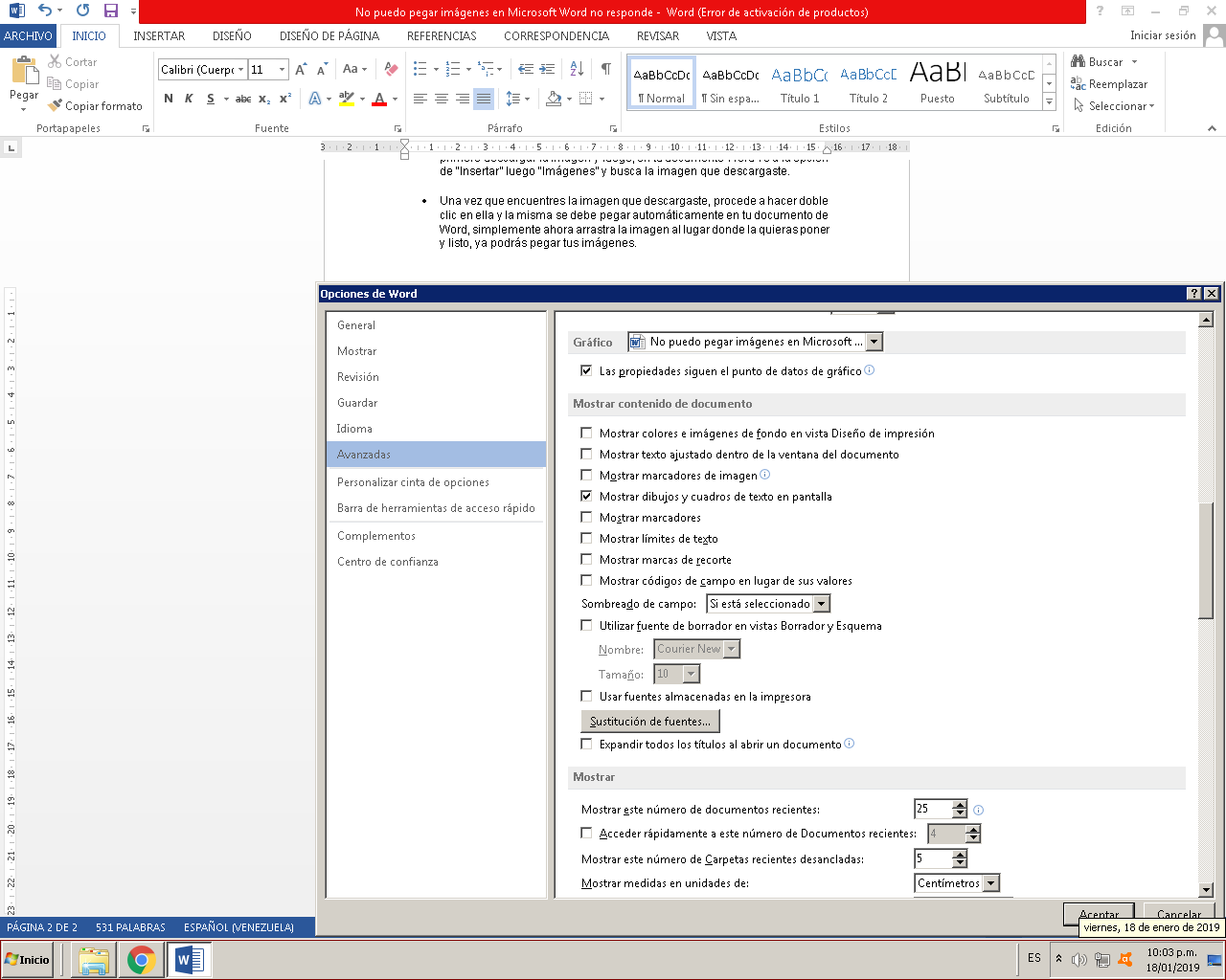 No puedo pegar imágenes en Microsoft Word no responde